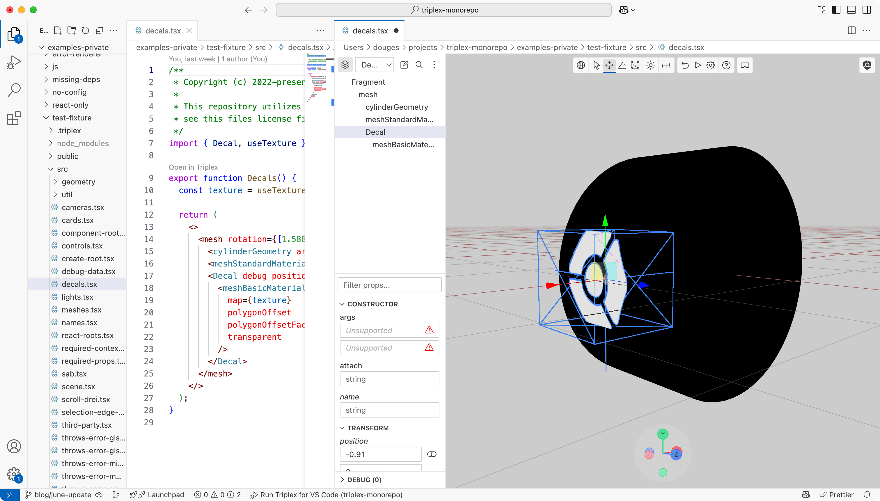 All without needing to write extra code to wire up the transform controls yourself! This is another reason why you'd be more productive with Triplex and React Three Fiber over vanilla Three.js.