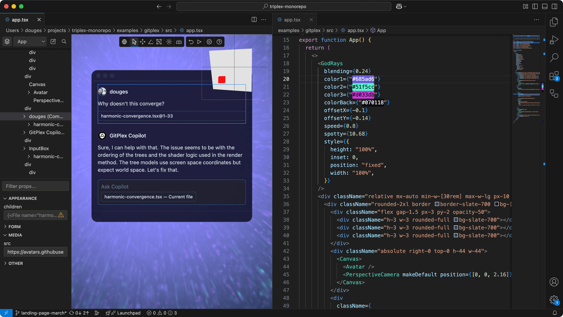 Pressing the Open in Triplex CodeLens action opens the component in Triplex. For more information see the Triplex for VS Code docs.